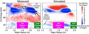 DOE/US Department of EnergyBurning fusion plasmas host a wide array of electromagnetic waves that can push energetic ions out of the plasma. Recent measurements at the D-IIID facility provide the first direct observations of energetic ions moving through space and energy in a tokamak. Researchers combined these measurements with advanced computer models of electromagnetic waves and how they interact with energetic ions. The results provide an improved understanding of the interplay between plasma waves and energetic ions in fusion plasmas. The results may also help improve the reliability of satellites exposed to plasma wave-energetic ion interactions.