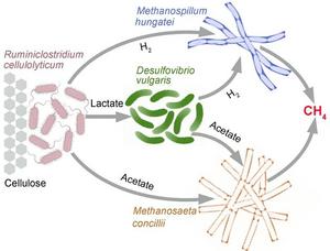DOE/US Department of EnergyThe complexity of microbiomes makes it difficult for scientists to study and predict microbes’ interactions. One solution is to use custom assemblies of microbes called synthetic communities. This study used a four-member community involved in the breakdown of cellulose into the greenhouse gases methane and carbon dioxide to study responses to increases in sulfate due to climate change.
