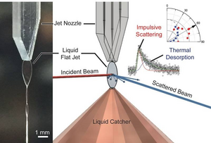 Researchers have developed an apparatus to study reactions between gas molecules and highly volatile liquids at the gas-liquid interface with new levels of detail. The apparatus directs a molecular beam onto a flat liquid surface, and when the beam scatters, a detector collects data on the speed, direction, and mass of molecules in the scattered beam. The novel approach will help scientists understand combustion engines, air pollution, and other phenomena.