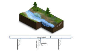 In many streams and rivers, water moves between the open channel and the adjacent groundwater, enabling reactions that can remove or transform carbon, contaminants, and nutrients. Researchers developed a new modeling strategy to represent these effects in watershed-scale models. The new model addresses current models’ limited ability to simulate how carbon, nutrients, and contaminants move and transform in river corridors and allows for a new generation of research on river networks.