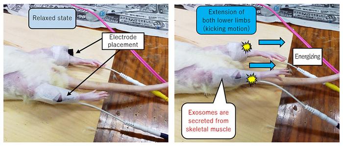 An experiment to promote the release of skeletal muscle-derived exosomes into the bloodstream by electrically stimulating the lower limb skeletal muscles of mice.