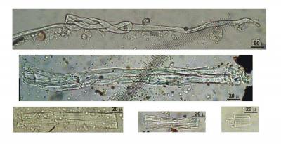 These are wild flax fibers from the Dzudzuana cave in Georgia. This image relates to an article that appeared in the Sept. 11, 2009, issue of Science, published by AAAS. The study, by Dr. E. Kvavadze at National Museum of Georgia in Tbilisi, Ga., and colleagues, was titled, "30,000-Year-Old Wild Flax Fibers."
