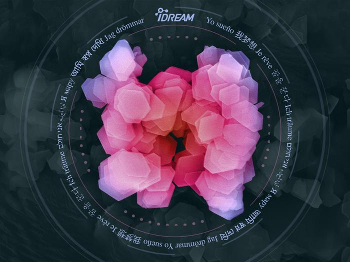 image: Aluminum crystals found in radioactive Hanford tank waste (in pink) are encircled by the phrase "I dream" in languages inclusive of the native languages spoken by Interfacial Dynamics in Radioactive Environments and Materials (IDREAM) Energy Frontier Research Center team members. The original electron microscope image was captured by University of Notre Dame postdoc Hanna Hlushko while conducting IDREAM research. The illustration is part of the IDREAM submission to the DOE Office of Science’s Basic Energy Sciences 2023 Poetry in Science Contest. view more