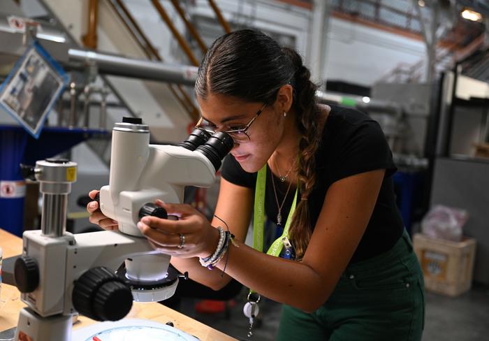 With guidance from expert operators, students loaded silicon wafers into the chambers to bombard them with different ions and dose rates, imitating ways space radiation could damage the materials.