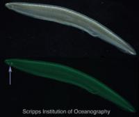 New hints have emerged as Erin Bomati, a former postdoctoral researcher at Scripps Oceanography, Gerard Manning of the Salk Institute for Biological Studies and Scripps lead-scientist Dimitri Deheyn discovered the largest known family of GFPs. They found 16 related types of GFPs in amphioxus, a thin, non-luminous fish-like animal that lives in coastal areas and spends most of its time burrowed in ocean sand. The discovery, described in the journal BioMed Central (BMC) Evolutionary Biology, was made in Branchiostoma floridae, an amphioxus species collected off Tampa, Fla.