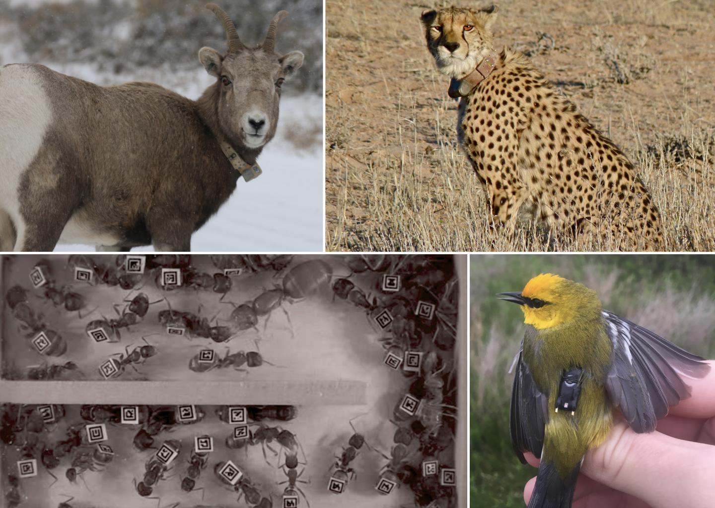 Credit: bighorn sheep, Lori Iverson - USFWS/flickr; cheetah - Bernard DuPont/flicker; black carpenter ants - Hughes Lab, Penn State; blue winged warbler - Gunnar Kramer, University of Toledo