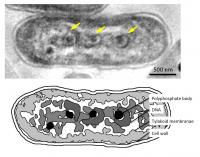 "We know that the difference between prokaryotes and eukaryotes is in the DNA packaging and delivering system, where eukaryotes have developed a nuclear membrane to protect their genes and form condensed chromosomes to properly parcel the genome into the daughter cell, whereas prokaryotes do not have such a system" corresponding author Kazuyoshi Murata says. "Our new findings throw light on the duplication and segregation mechanisms of cyanobacterial DNA and point to an important role for polyphosphate bodies. They may give hints as to by what steps the evolution from prokaryote to eukaryote took place. "