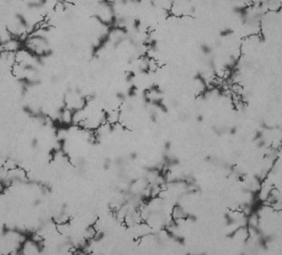 image: Microglia -- the immune defense cells of the brain shown here -- become more reactive to infection during aging. Researchers found a small amount of exercise protected older rats from memory loss following infection and prevented the exaggerated response of microglia in the brain’s learning and memory center. view more
