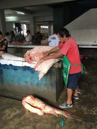 To study the region's fish, the study's lead author, then-Columbia PhD. student Sebastian Heilpern, made numerous shopping trips to the bustling Belén retail market in the provincial capital of Iquitos. He also visited the city's Amazon River docks, where wholesale commerce begins at 3:30 in the morning. He and another student bought multiple specimens of as many different species as they could find, and ended up with 56 of the region's 60-some main food species. These included modest-size scale fish known locally as ractacara and yulilla; saucer-shaped palometa (related to piranha); and giant catfish extending six feet or more. (The researchers settled for chunks of the biggest ones.)