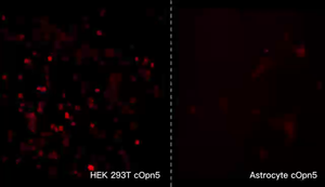 The authors further demonstrated that cOpn5-mediated optogenetics could be applied to strongly activate neurons and astrocytes, a major type of non-excitable glia cells in the brain. cOpn5 also enabled optical control of mouse feeding behavior in a neural circuit-specific manner. The authors speculated that, given the importance of Gq-coupled receptors in both excitable cells and non-excitable cells, cOpn5 optogenetics may find broad applications in studying the mechanisms and functional relevance of Gq signaling in all tissues and organs.