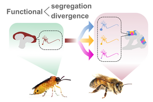“I was surprised that each of the three KC subtypes in the honey bee showed comparable similarity to the single KC type in the sawfly,” said Assistant Professor Hiroki Kohno, co-author from the Graduate School of Science. “Based on our initial comparative analysis of several genes, we had previously supposed that additional KC subtypes had been added one by one. However, they appear to have been separated from a multifunctional ancestral type, through functional segregation and specialization.” As the number of KC subtypes increased, each subtype almost equally inherited some distinct properties from an ancestral KC. These then modified in different ways, resulting in their varied present-day functions.