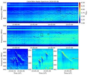 Researchers discovered a previously unknown solar radio pattern — periodic beaded stripes — using the Chashan Broadband Solar Radio Spectrometer during a 2024 flare. These narrow, drifting radio bands, dotted with rhythmic “beads”, reveal rapid plasma processes in the Sun’s corona. The team attributes their formation to the double plasma resonance effect, modulated by magnetohydrodynamic waves. Observations suggest a weak magnetic field (~1 G) above the flaring loops in an active solar region.