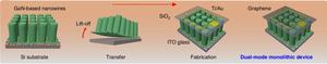Recently, addressing the inherent timescale mismatch challenge between fast and slow responses in optoelectronic sensors, a collaborative team from Suzhou Institute of Nano-Tech and Nano-Bionics (SINANO), Chinese Academy of Sciences (Yukun ZHAO, Shulong LU, Min JIANG), Fudan University (Lifeng BIAN), and Suzhou University of Science and Technology (Jianya ZHANG) has proposed an innovative monolithic integration scheme. By combining surface defect introduction and local contact interface design with a gallium nitride (GaN) nanowire lift-off technique that eliminates the interference from the underlying silicon substrate, the team integrates fast and slow responses into a single device. This results in a transparent bifunctional device capable of self-driven detection and neural synaptic integration, with omnidirectional (360°) detection capability. As a photodetector, the device demonstrates the millisecond-level response speeds, while it exhibits the second- to minute-level relaxation time as an artificial synapse, achieving an over 1000-fold contrast in response dynamics. The device has been validated in the intelligent perception systems for humanoid robots successfully, advancing the development of multifunctional monolithic optoelectronic devices and providing a solid foundation for further research in related fields.