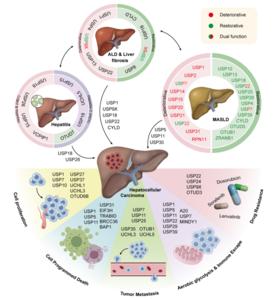 Fatty liver disease, hepatitis, hepatocellular carcinoma (HCC), and other major liver diseases are significant global public health challenges. Understanding what drives these diseases and exploring targeted therapies is of critical importance. Recently, in the journal Science China Life Sciences, a team from Shandong Second Medical University in collaboration with Shanghai Jiao Tong University published an online review titled "Deubiquitinases in liver diseases: from mechanisms to targeted therapy". This review systematically elucidates the central roles and therapeutic advances related to deubiquitinases (DUBs) in various liver diseases.