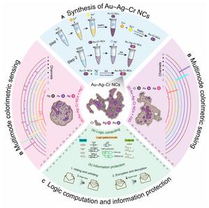 19-Oct-2025 多功能纳米复合材料的突破:从传感到信息安全保护 Research 近期,黄伟涛课题组在《Research》期刊上发表了一项突破性研究成果,成功合成了一种多功能的三金属金-银-铬纳米复合材料(Au–Ag–Cr NCs),并将其应用于多个领域,包括多模式和多分析物传感、高级算术和可逆逻辑运算,以及大规模信息安全保护。这一研究不仅更新了多金属纳米材料的制备范式,还为分子信息技术开辟了新的应用方向。 Journal Research Funder National Key Research and Development Program of China, National Natural Science Foundation of China, Science and Technology Innovation Program of Hunan Province, Hunan Provincial Natural Science Foundation of China, Research Foundation of Education Bureau of Hunan Province