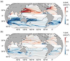 13-Oct-2025 中尺度涡搅拌作用主导全球海洋经向涡致热输运 Science China Press 结合欧拉与拉格朗日两种观点,更为严谨地量化了全球中尺度涡搅拌作用与裹挟作用引起的海表经向涡致热输运(EHT),发现在全球大多数海区,搅拌作用引起的EHT量值都要比裹挟作用引起的EHT大1~2个数量级,揭示了中尺度涡的水平搅拌作用是引起EHT的主导机制。相关成果发表于《中国科学:地球科学》中英文版2025年第9期。 Journal Science China Earth Sciences