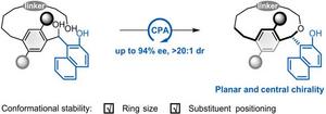 A research team led by Associate Professor Changgui Zhao of Beijing Normal University reported the first intramolecular enantioselective, atropselective, and diastereoselective macrocyclization of quinone methylene (QM) with alcohols catalyzed by chiral phosphoric acid (CPA), successfully constructing planar chiral type III cyclophanes. This strategy, using 2-naphthol as a cofactor, significantly improved the reaction activity and stereoselectivity by generating the more reactive naphthoquinone methylene (NQM) intermediate. Thermodynamic studies demonstrated that the benzylic substituent significantly influences the conformational stability of the cyclophane: even when the ansa chain is extended by two carbon atoms, its planar chirality is maintained, indicating that the conformational stability of this type of cyclophane is controlled by both the macrocycle size and the position of the functional groups on the ansa chain. This study provides important insights into the relationship between the structure of cyclophanes and the mechanism of chirality. The article was published as an open access research article in CCS Chemistry, the flagship journal of the Chinese Chemical Society.