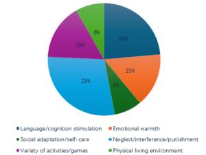Higher Education PressRelative weights analyses showed the neglect/interference/punishment domain contributed most significantly (28.78%) to behavior problems in preschool children with developmental disabilities.