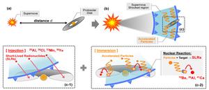 A new study posits a scenario in which a supernova shockwave sent critical ingredients for the formation of Earth-like rocky planets during the creation of the solar system. The creation of the solar system’s rocky planets likely required an injection of short-lived radionuclides (SLRs), including aluminium-26 (26Al), from a supernova. Preexisting models have not been able to explain how this explosion could have injected necessary levels of the ingredients without causing the destruction of the protosolar disk. The newly proposed “immersion” mechanism preserves the disk, indicating that the conditions that lead to terrestrial planets may be more widespread in the universe than previously thought. “At least 10%, possibly 50% of Sun-like stars are likely to host protoplanetary disks with SLR abundances similar to those of the protosolar disk,” Ryo Sawada and colleagues write. “Our results suggest that Earth-like, water-poor rocky planets may be more prevalent in the Galaxy than previously thought.” Prior simulations could not achieve the SLR level necessary for terrestrial planet evolution (levels established from past meteorite analyses) without obstructing the solar system’s genesis. Now, Sawada et al. describe how a supernova roughly 1 parsec away could have produced the requisite SLR abundance without imperiling the protosolar disk. Their immersion mechanism incorporates shockwave-driven injections of the SLRs manganese-53 and iron-60 into the protosolar disk, triggering cosmic-ray nonthermal nucleosynthesis of 26Al and additional SLRs. The calculations indicate that solar-mass stars in star clusters have a high probability of encountering a supernova within a distance of a parsec. This means there may be far more systems with the needed SLR abundances for terrestrial planet development.