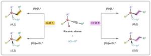 Professor Chuan He's research group at Southern University of Science and Technology reported an example of asymmetric Si–H/O–H coupling between racemic monohydrosilanes and alcohols in the same catalytic system, simultaneously achieving enantiomeric construction of the silicon chiral center and precise control of the Z/E configuration of the alkene. Through mechanistic studies combined with DFT calculations, the stereopolymerization of silicon chirality and the cis-trans isomerization process of the alkene were elucidated in detail. This reaction exhibits excellent yields and good to excellent enantiomeric selectivity, providing a new scheme for the efficient synthesis of four stereoisomers [( R,Z), (R,E), (S,Z), (S,E)]. The article was published as an open access Research Article in CCS Chemistry, the flagship journal of the Chinese Chemical Society.